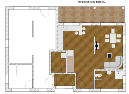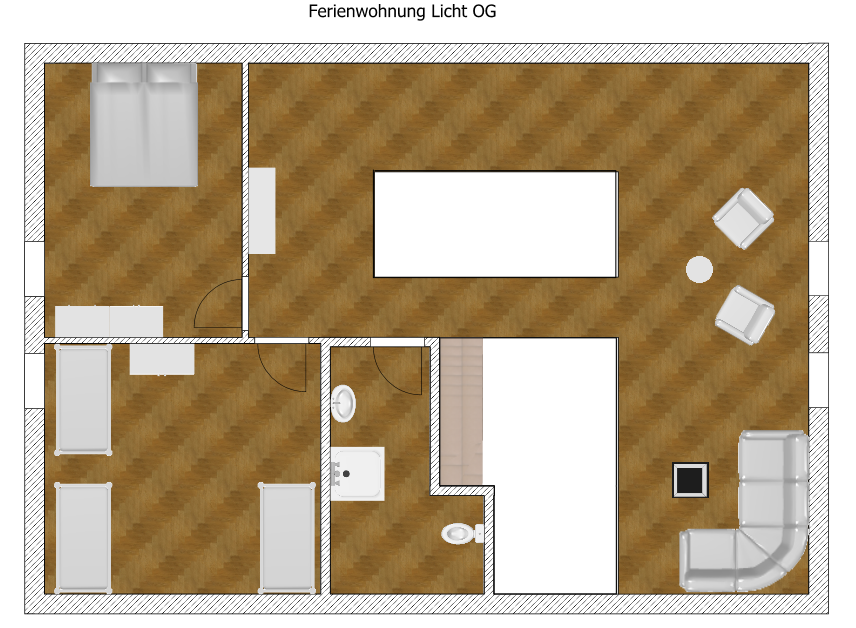 Unsere Ferienwohnung Licht bietet mit ihren 128m² auf 2 Etagen ausreichend Platz für 5 Personen.